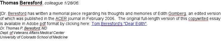 I was the last graduate student of Henry Gomberg before he passed in 1995. As Edith and Henry were inseparable,