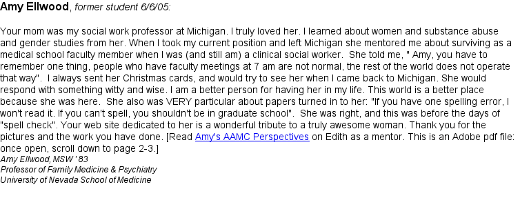 I took Edith for a couple of classes in substance abuse while in graduate school .We often disagreed. After I joined the